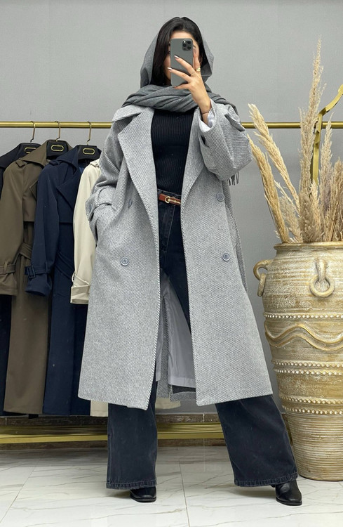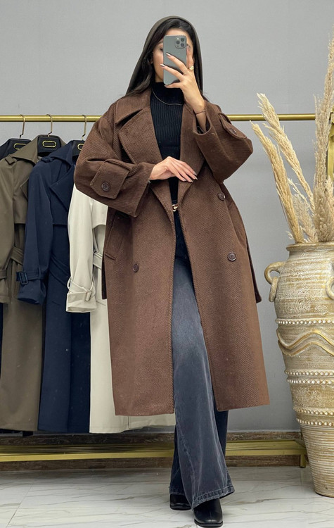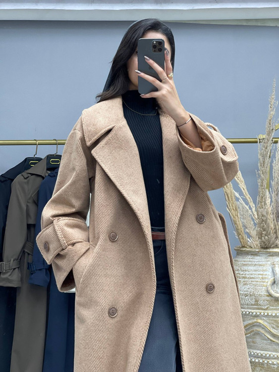 ‌پالتو فوتر زنانه بلند استر همرنگ دوخت شیک و کلاسیک